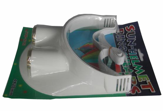 太阳帽双筒望远镜; 4x30定焦; 带挂绳; 材料:外壳ABS;镜片PMMA..